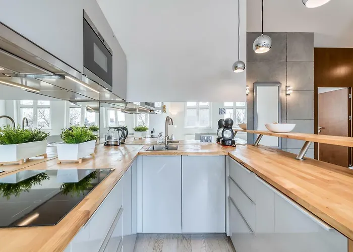Diese Unterkunft bietet eine komplette Küche mit einer Mikrowelle, einer Kaffee-/Teemaschine und Küchenutensilien. Die Gäste dieses Apartments können den Komfort von Ausstattung zur Kaffee- & Teezubereitung genießen. Das Restaurant Brovaria bietet mitteleuropäische Speisen und liegt circa 6 Gehminuten von diesem Apartment entfernt. Die nächstgelegene Bushaltestelle Marcinkowskiego ist in der Entfernung von 250 Metern.