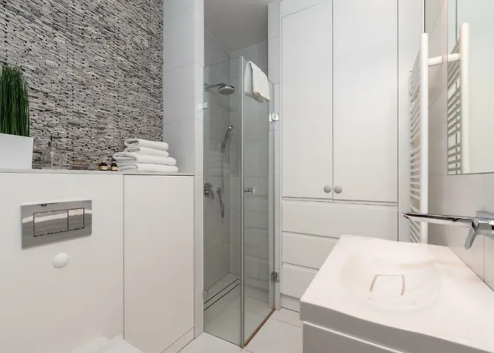 Das Ferienwohnung Apartament "Holy" verfügt über einen Ankleidebereich und eine Sitzecke, ausgestattet mit einem Sofa und einem Schreibtisch und modernen Annehmlichkeiten wie einem Flachbildfernseher mit Satellitenkanälen. Rauchmelder gehören zu den Sicherheitseinrichtungen im Zimmer. Für Ihren Komfort stehen Ihnen in diesem 50 m^2 großen Apartment eine behindertengerechte Dusche und eine getrennte Toilette zur Verfügung. Außerdem gibt es einen Haartrockner, Toilettenartikel und Badelaken.